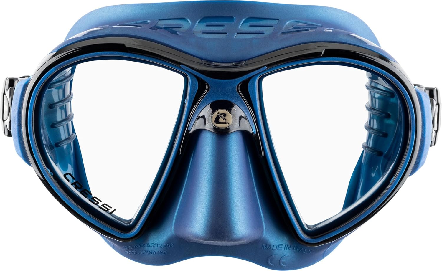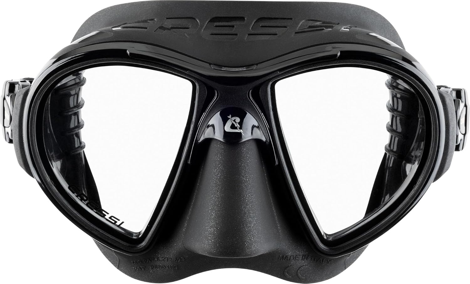 Zeus is the perfect mask for diving. This mask has a particular tapered structure deriving directly from the highly popular Nano-mask patent. The same IDF (Integrated Dual Frame Technology System) allows you to join the silicone skirt to the lens frame without major interruptions of curvature continuity. The result is a mask with an extremely hydrodynamic shape and, visibility being equal, a significantly smaller size. The field of view obtained is particularly wide, laterally, and in the lower zone. The Zeus mask was designed and manufactured in Italy by Cressi, an Italian brand pioneer in freediving, spearfishing, and scuba diving equipment since 1946.