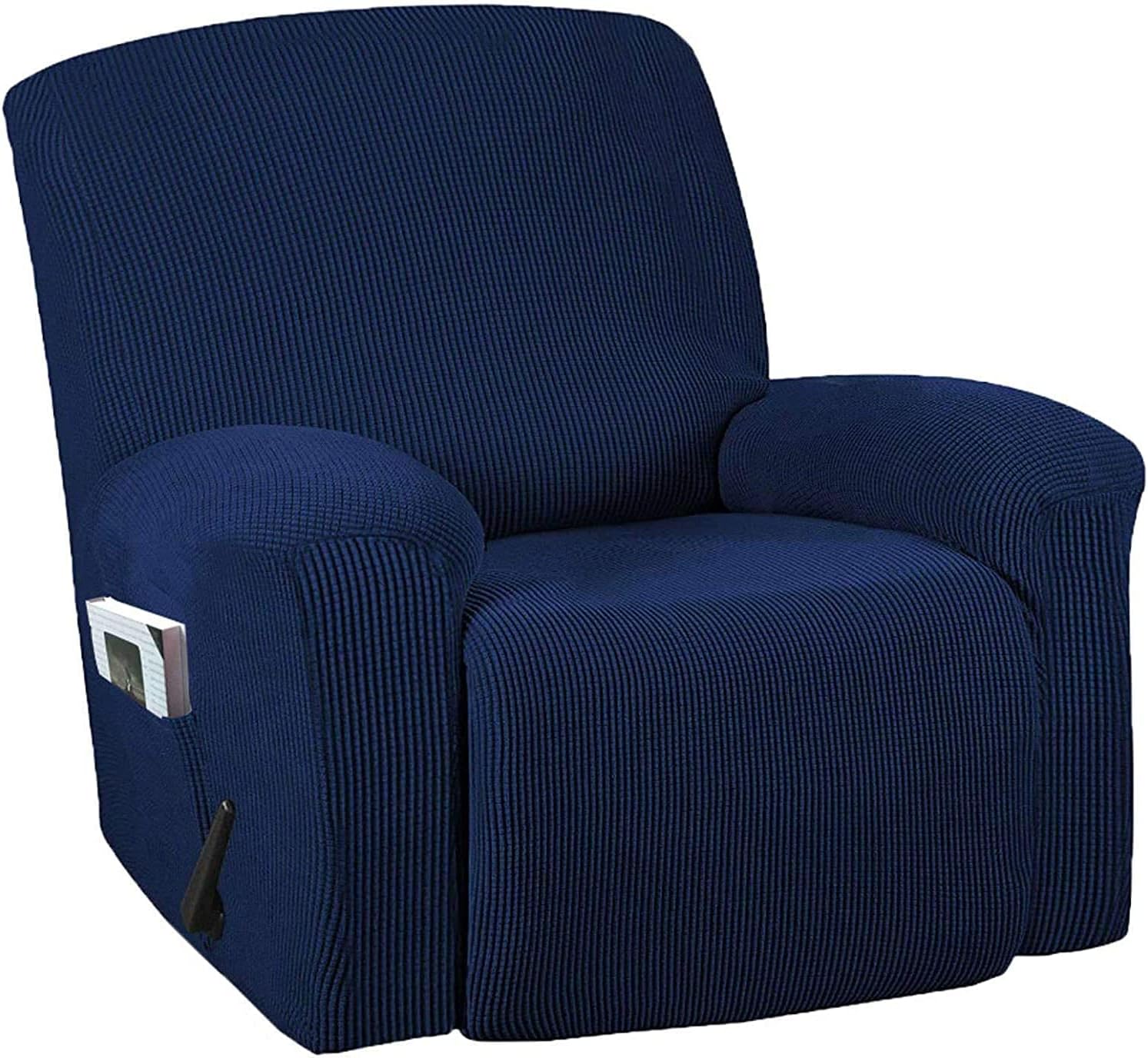 Made of durable and gentle 85% polyester and 15% spandex knitted jacquard fabric, soft rich and texturedHas a footrest that has pleats at the front corners to help the fabric wrap beneath the furnitureEasy to install, with instructional tags to seamlessly guide you through the installation process4-Piece recliner covers are sophisticated designed, including 2 pieces arm covers,1 center back of seat piece and 1 center backAnything unclear or problem,just do not hesitate to contact us.We are sure get you perfect solutions. We want our customers to be 100% happy.